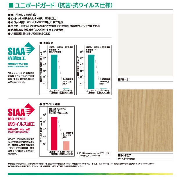 弊社では、抗菌・抗ウイルスのご要望に対応するため『ユニボードガード』を新商品として展開しております。